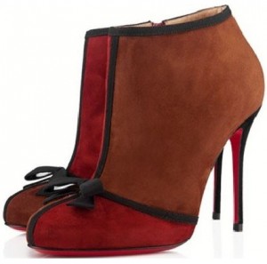 Kırmızı kahverengi ince topuklu bayan süet bot modeli