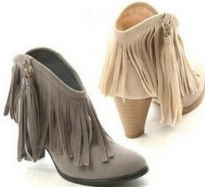 Krem rengi ve gri püsküllü bayan süet bot modelleri