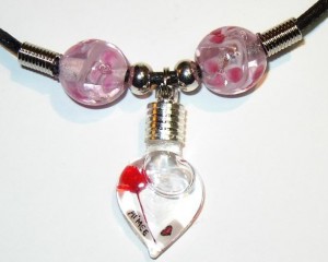 Cam kalp içinde pirinç üzerine isim yazılı bayan kolye modeli