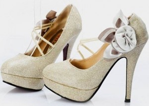 Dore rengi yandan çiçekli platform tabanlı bayan ayakkabı modeli