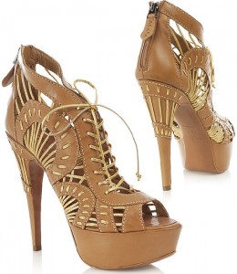 Kahverengi bağcıklı platform tabanlı bayan ayakkabı modeli