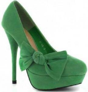 Yeşil süet yandan fiyonklu platform tabanlı bayan ayakkabı modeli