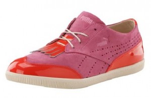 Kırmızı süslemeli pembe Puma bayan spor ayakkabı modeli